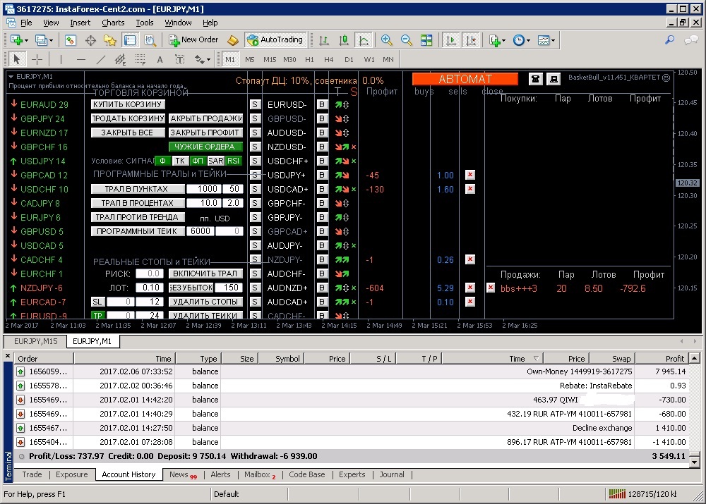 Качнул последнюю версию BasketBull_v11.460_beta_test.mq4, поставил на демо. Глядь! А у меня уже есть таковая (BasketBull_v11.460_beta_test.mq4) давай сравнивать - есть разница. Евгений, в чем отличие в этих версиях, качал только с твоих постов, кажется.