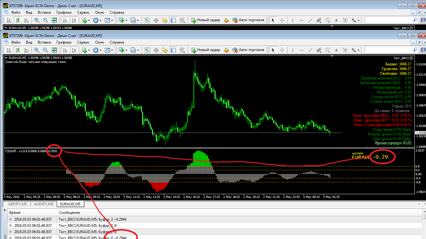 значение для сигнала от CSSdiff поставил 0.4 и -0.4 (как и задумывал автор индюка)